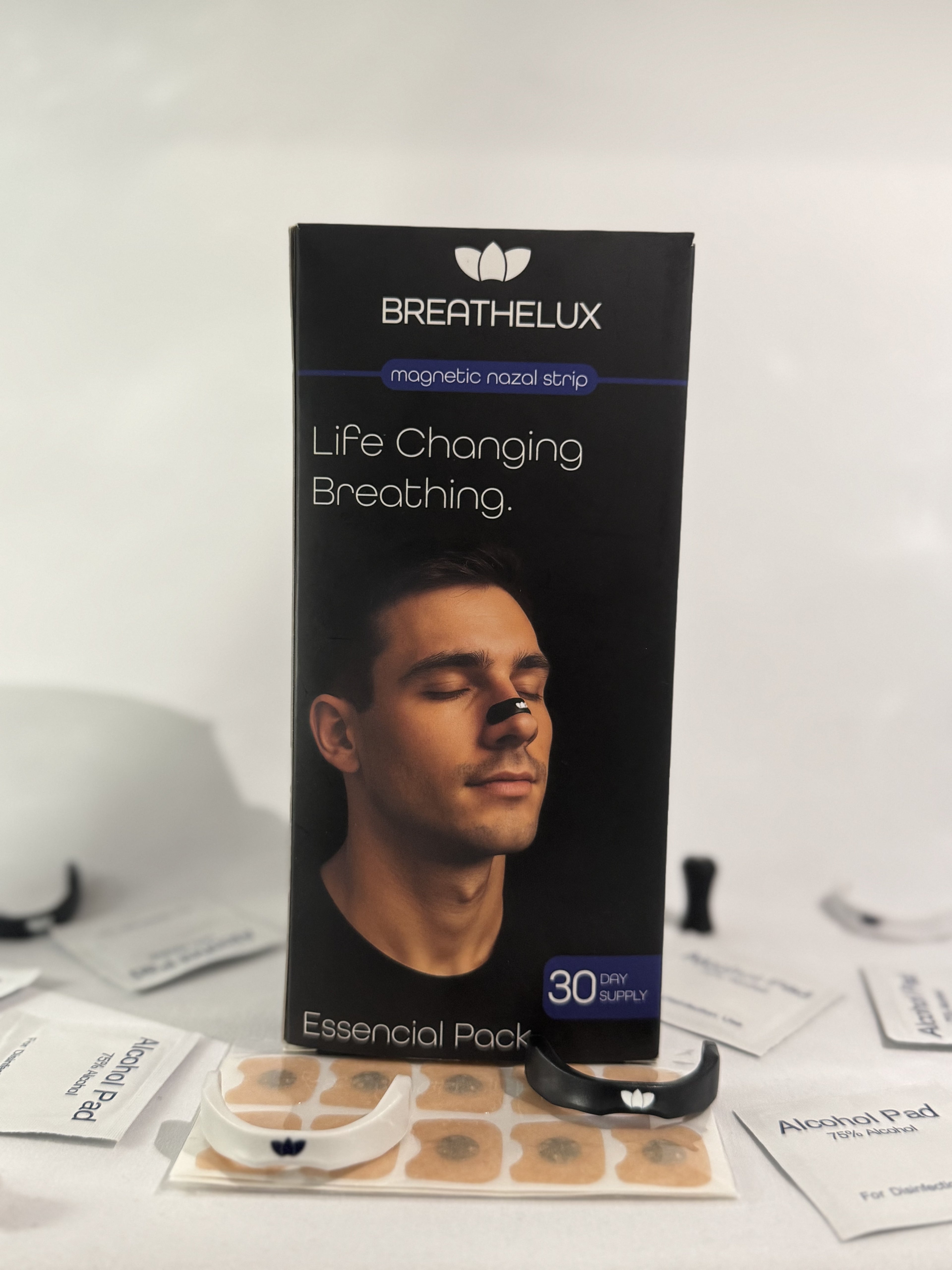 BreatheLux uses magnetic tabs requiring minimal adhesive for sensitive skin.